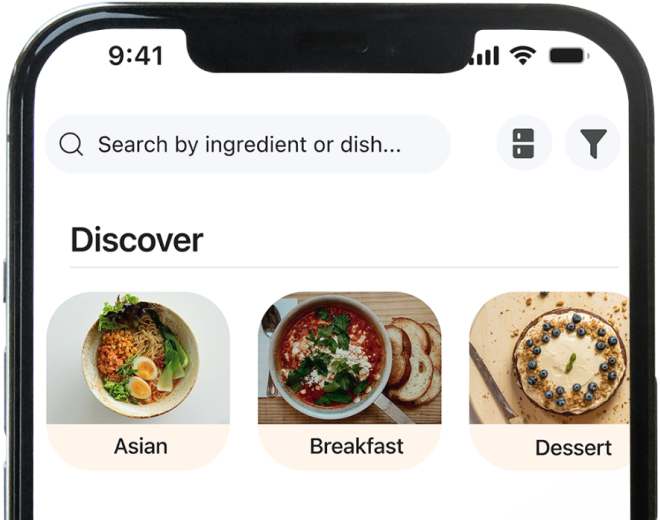 Modern cooking app centered on guided recipes, meal planning, and ingredient management.