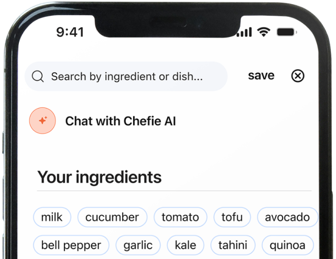 Search-bar contains an AI chat option, and an ingredients tab providing quick access to further filtering.